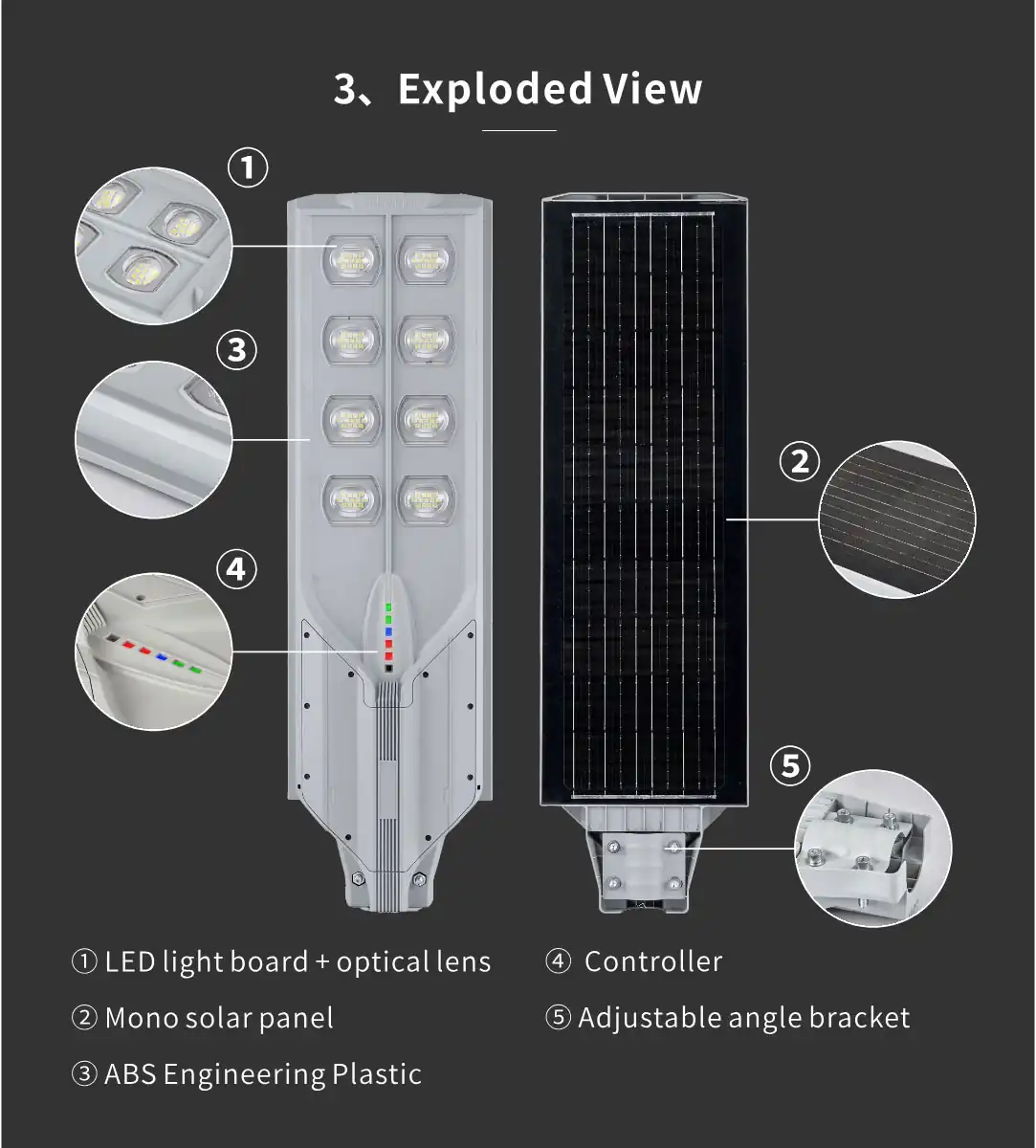 - অল-ইন-ওয়ান ডিজাইন: সোলার প্যানেল, ব্যাটারি ও LED আলো একসাথেই রয়েছে