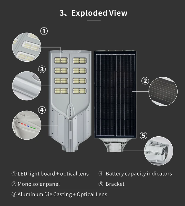 - অল-ইন-ওয়ান ডিজাইন: সোলার প্যানেল, ব্যাটারি ও LED আলো একসাথেই রয়েছে